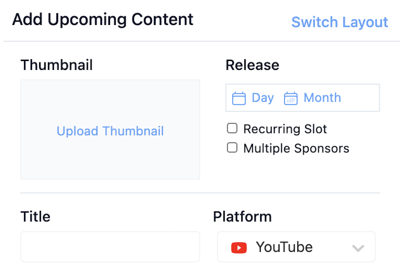 Improve your value to brands and get more requests by adding previews of upcoming content in minutes. Add titles and concept thumbnails to help bring your vision to life.