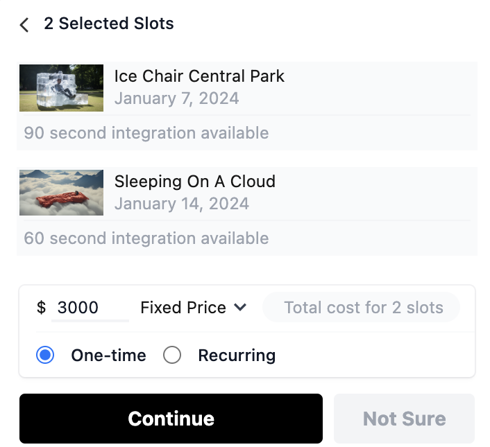 Add your unique Sponsorly URL in bio and setup an auto-responder for your business email so brands can submit fixed price, per slot, monthly or CPM bids directly on content without slow back-and-forth emails.